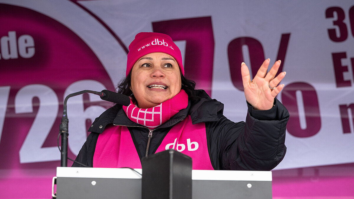 Milanie Kreutz, stellv. dbb-Bundesvorsitzende und Vorsitzende der dbb bundesfrauenvertretung betonte am 3. Februar 2026 auf der Kundgebung: „Die Arbeitgebenden behaupten gerne, dass unsere Forderungen ‚astronomisch‘ seien. Dabei sind unsere Forderungen angemessen. Wir fordern das, was wir verdienen. Das Einkommen der Beschäftigten muss konkurrenzfähig sein und mit der Inflation mithalten können – mindestens.“ Der dbb fordert sieben Prozent, mindestens aber 300 Euro mehr Einkommen.